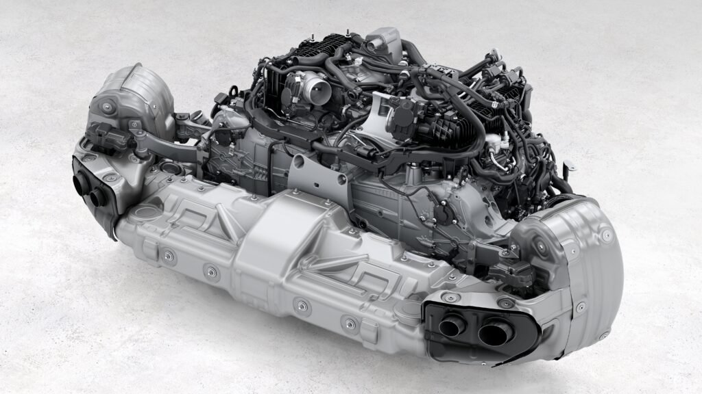 T-Hybrid 系統結合 3.6 升水平對向六缸引擎及電動化技術,最大特點係 eTurbo 電控渦輪。傳統 Turbo S 最令人印象深刻嘅係「瞬間加速」,但渦輪遲滯(turbo lag)始終難以完全消除。今次引入電動渦輪後,系統能夠即時提供壓縮空氣,令引擎反應更加直接,再加上集成於 PDK 波箱的電馬達,即使係低轉速加速都可以保持強大推力。